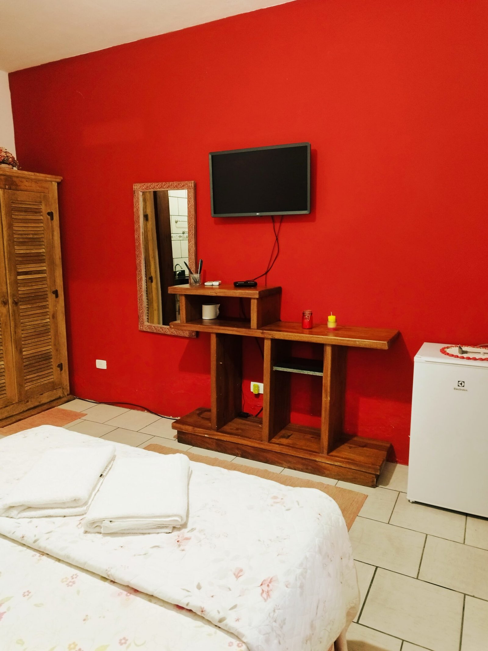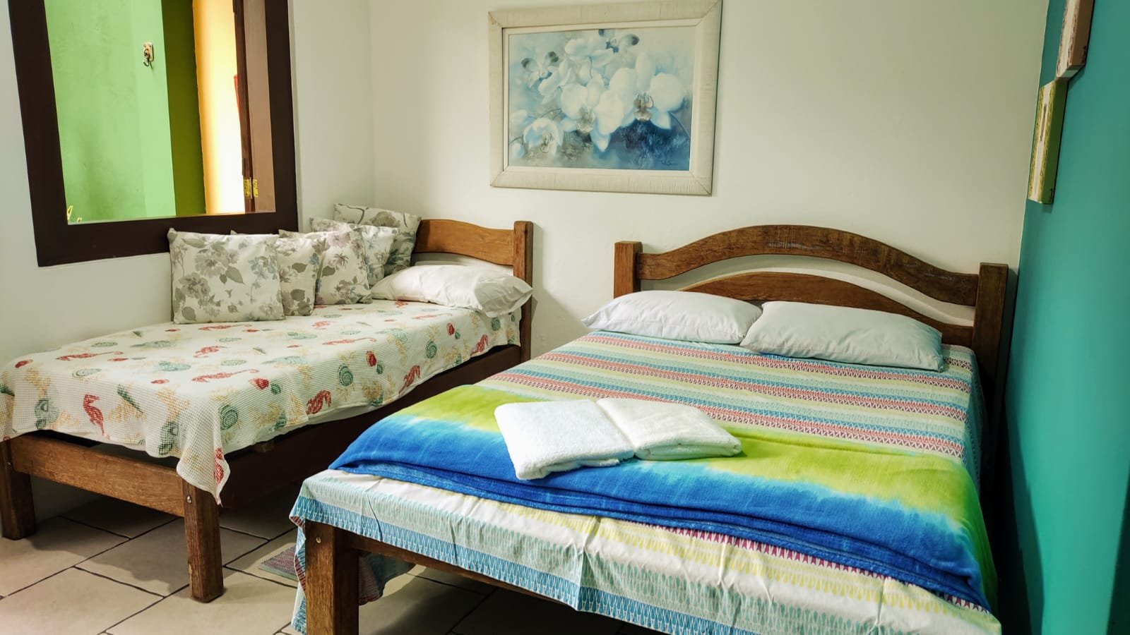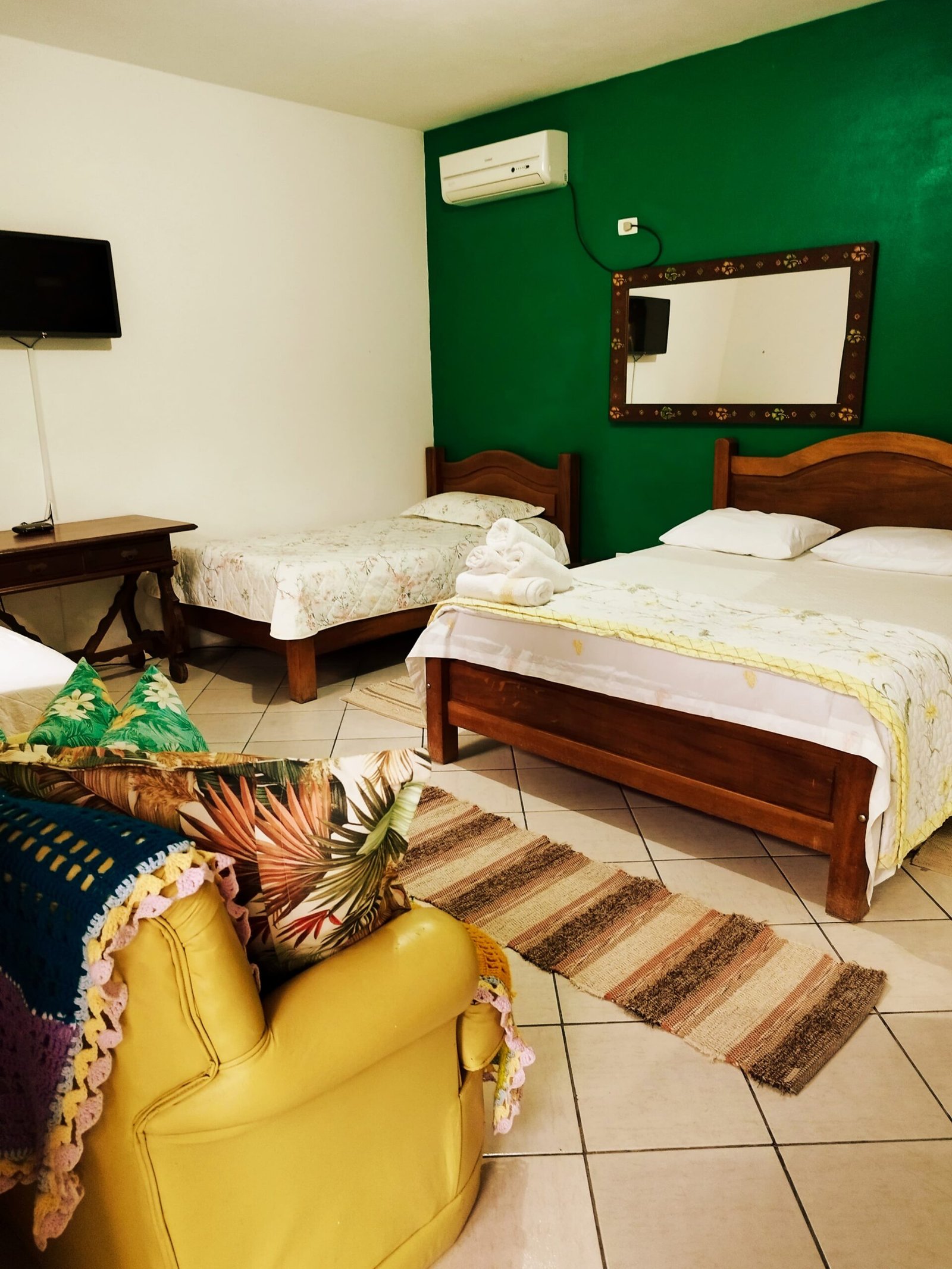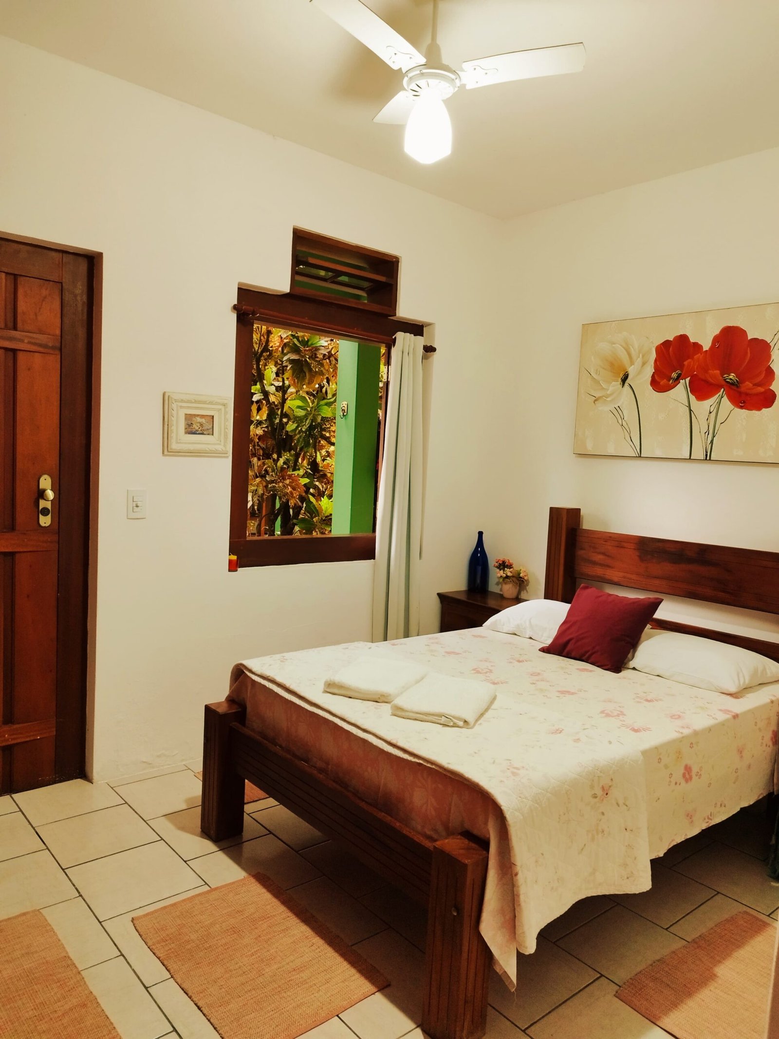 Equipada com ar-condicionado, ventilador de teto, TV Smart, frigobar, banheiro privativo e Wi-Fi, oferece praticidade sem abrir mão da tranquilidade.